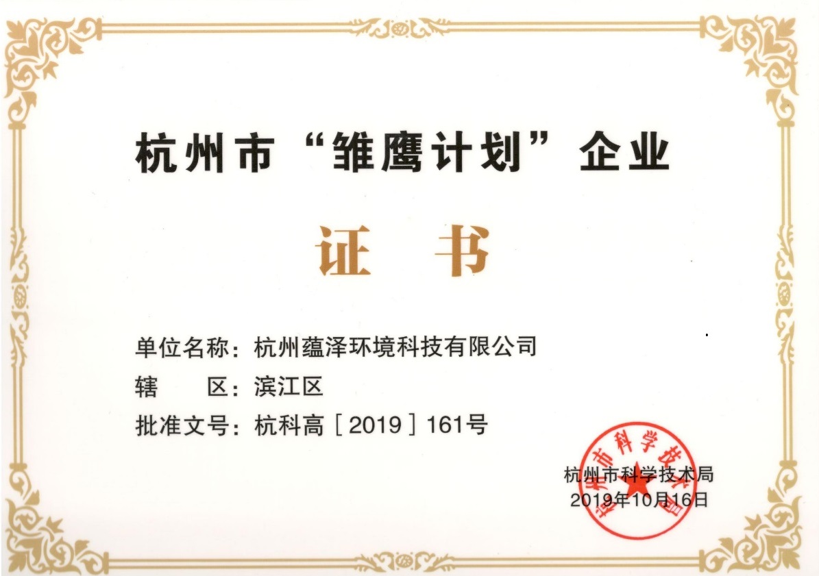 熱烈祝賀蘊澤環(huán)境榮獲杭州市“雛鷹計劃”企業(yè)稱號